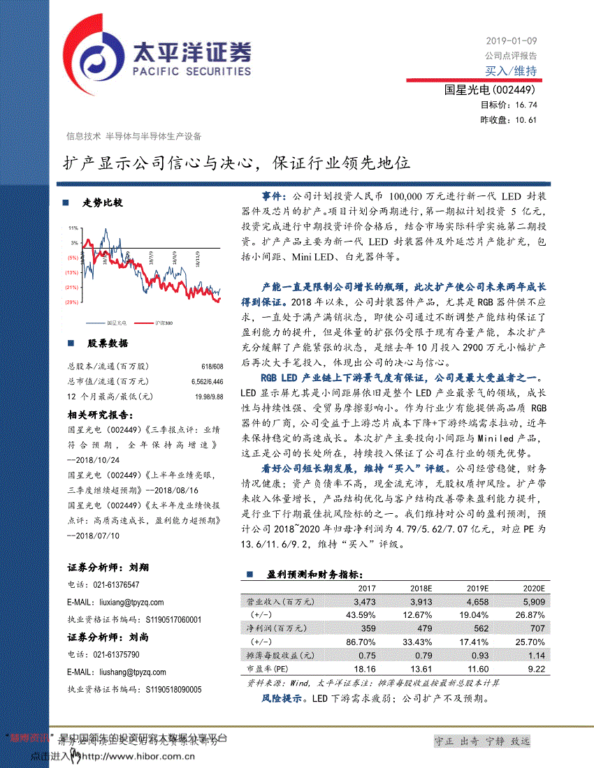 公司报告模版信息技术半导体与半导体生产设备扩产显示公司信心与决心ღ✿,保证行业领先地位 事件ღ✿:公司计划投资人民币100,000万元进行新一代LED封装器件及芯片的扩产ღ✿。